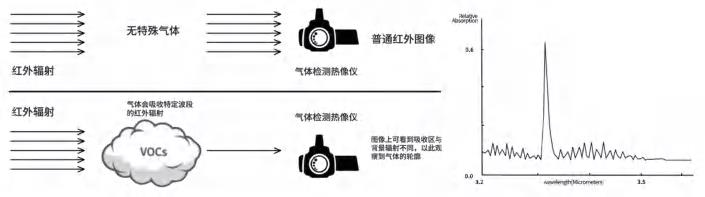 GIR320采用光學(xué)氣體成像技術(shù)——OGI、氣體分子的振動(dòng)與紅外吸收技術(shù)、氣體泄漏被動(dòng)式紅外成像的層輻射傳輸模型技術(shù),針對(duì) VOC 氣體紅外吸收譜波段的紅外探測(cè)器,使紅外熱像儀能夠?qū)θ搜鄄豢梢?jiàn)的 VOC 氣體進(jìn)行成像,儀器紅外氣體成像技術(shù)具有直觀、高效、安全的三大特點(diǎn)。
