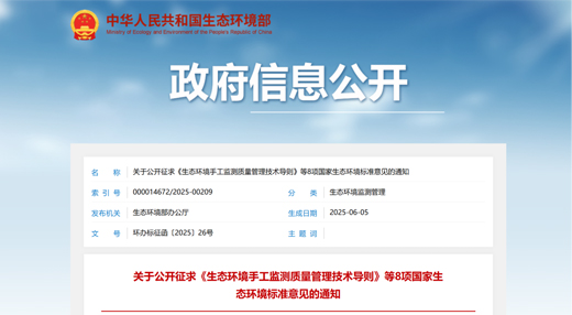 近日生態(tài)環(huán)境部發(fā)布公開征求《生態(tài)環(huán)境手工監(jiān)測質(zhì)量管理技術(shù)導(dǎo)則》等8項國家生態(tài)環(huán)境標(biāo)準(zhǔn)意見的通知。