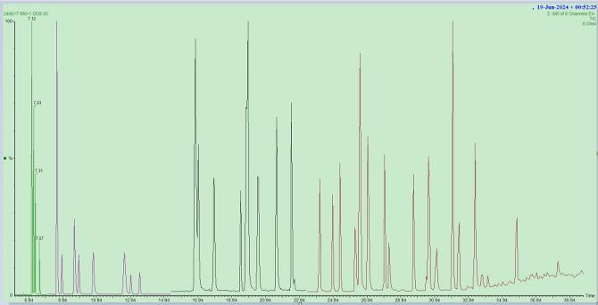 本方法采用Ontech880四級(jí)液氮制冷預(yù)濃縮儀與GC-MS聯(lián)用技術(shù),對(duì)42種ODS及其它受控鹵代烴進(jìn)行檢測(cè)。結(jié)果顯示,目標(biāo)物的相關(guān)系數(shù)均在0.998以上,方法檢出限介于0.2ppt- 0.5ppt之間。該方法分離度良好、靈敏度高且穩(wěn)定可靠,可滿足《環(huán)境空氣中消耗臭氧層物質(zhì)和含氟溫室氣體手工監(jiān)測(cè)技術(shù)規(guī)范》中關(guān)于環(huán)境空氣中ODS和含氟溫室氣體(F-GHGs)的監(jiān)測(cè)要求。